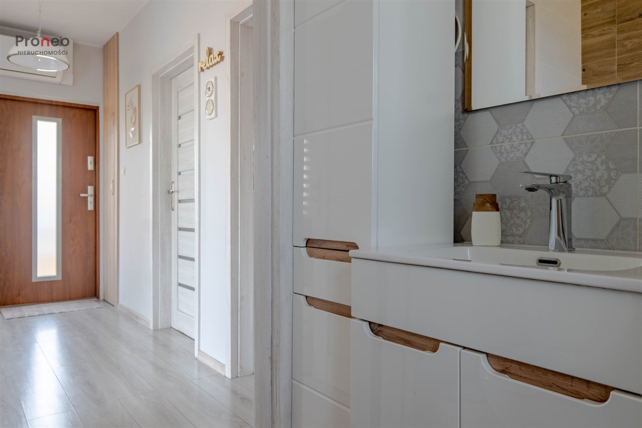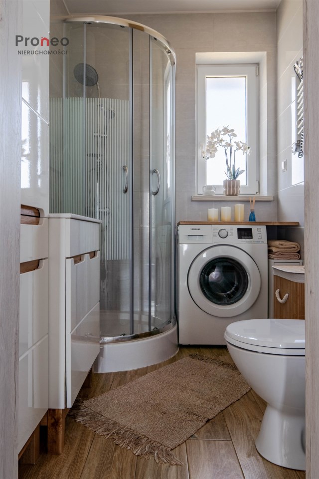 | Wyposażenie łazienki | kabina prysznicowa, lustro, pralka, umywalka, WC |